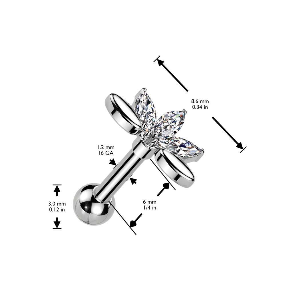5 Marquise CZ Fan 316L Surgical Steel Cartilage, Tragus Barbell Stud