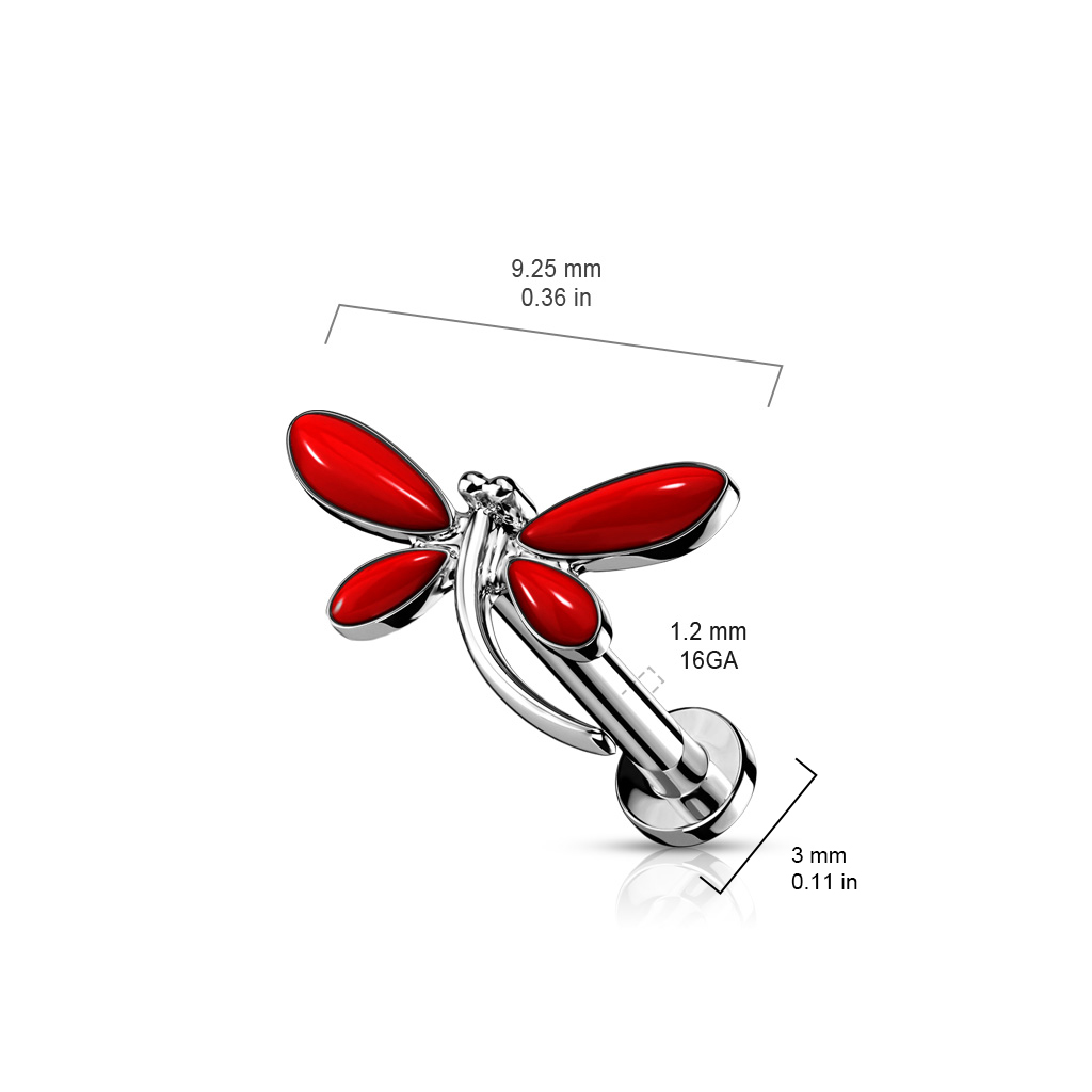 Dragonfly Top on Internally Threaded 316L Surgical Steel Flat Back Studs for Labret