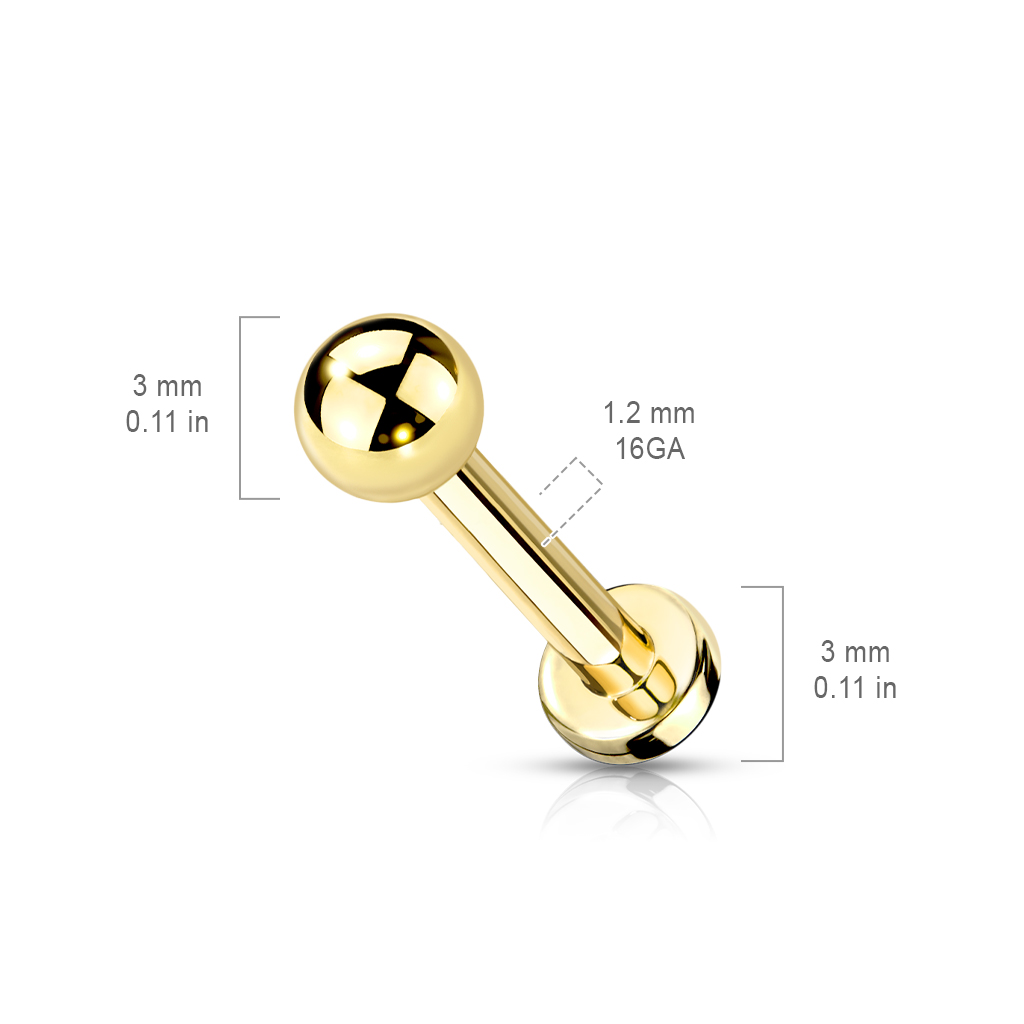 Implant Grade Titanium Externally Threaded PVD Plated Labret With Basic Ball Top